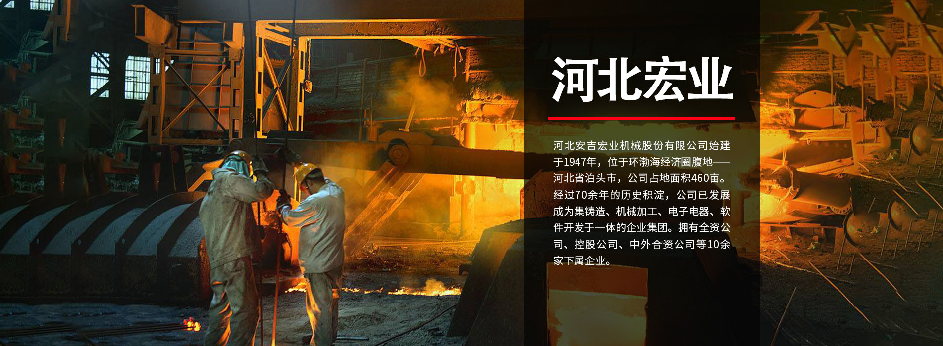 河北安吉宏業機械股份有限公司始建于1947年,位于環渤海經濟圈腹地---河北省泊頭市,公司占地面積460畝。經過70余年的歷史積淀,公司已發展成為集鑄造、機械加工、電子電器、軟件開發于一體的大型企業集團。擁有全資公司、控股公司、中外合資公司等10余家下屬企業。擁有一家省級技術研究中心,并在上海、天津、滄州設立了三個研發中心。擁有一支包括教授級高級工程師、博士、碩士、本科生在內的多學科、專業齊全的機電結合型技術團隊?,F有產品涉及汽車零部件、流體機械、精加工鑄造領域。